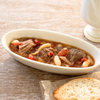 牛肉(オーストラリア産、国産)、たまねぎ、トマト・ピューレーづけ、シェリー酒、白いんげん豆、植物油脂、食塩、にんにく、ブラックペッパー、ブーケガルニパウダー、(一部に牛肉を含む) |